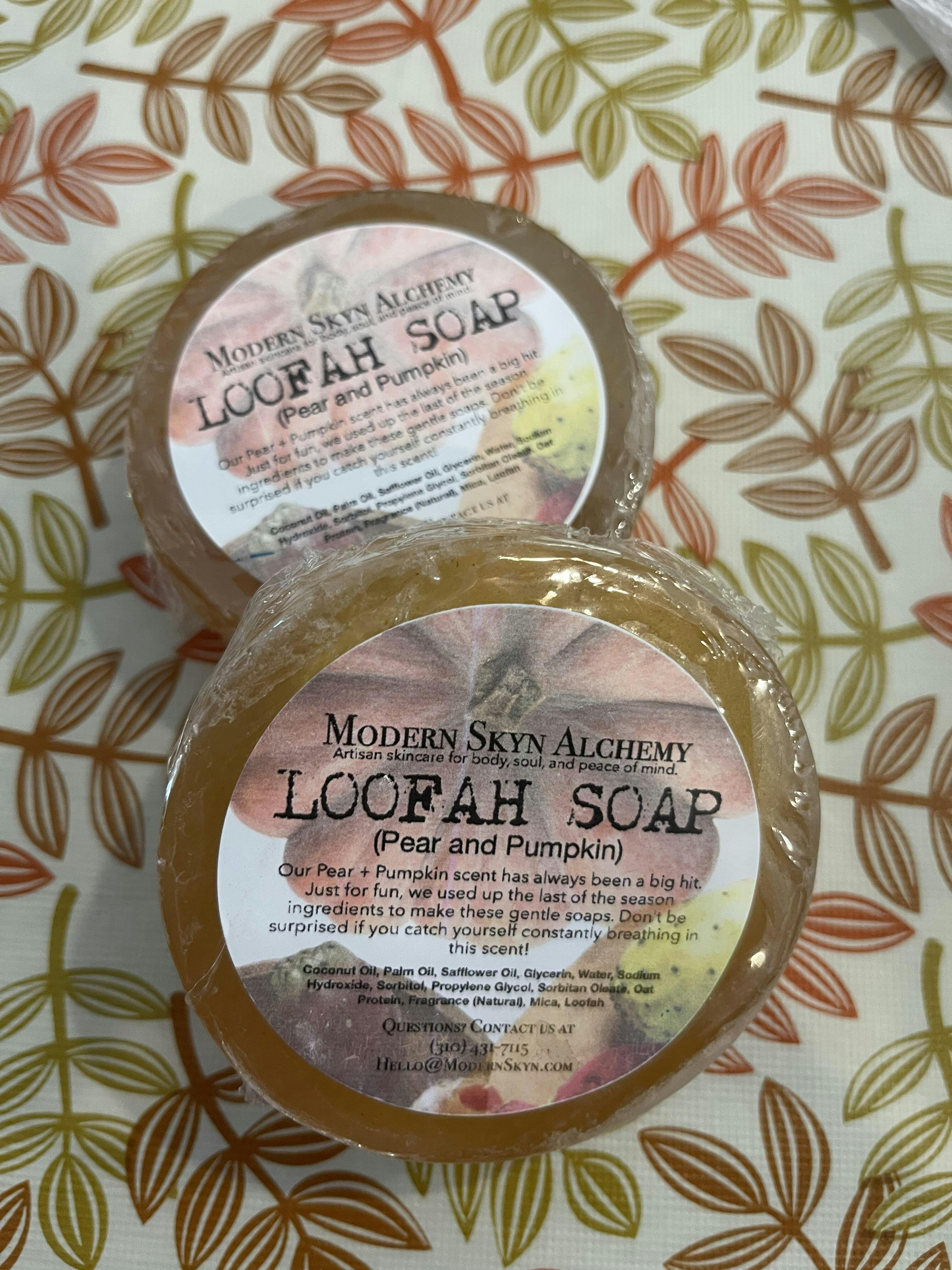 Celebrate the magic of fall with our Pear & Pumpkin Loofah Soap. This handcrafted bar blends the crisp, juicy sweetness of ripe pears with the warm, spiced comfort of pumpkin for a fragrance that’s both fresh and cozy.
