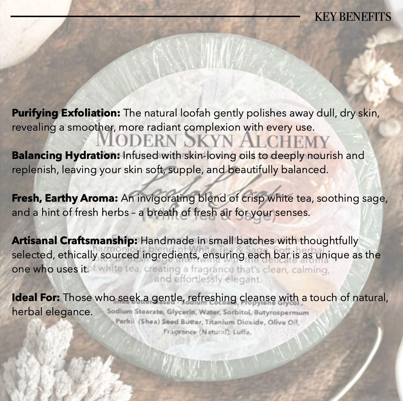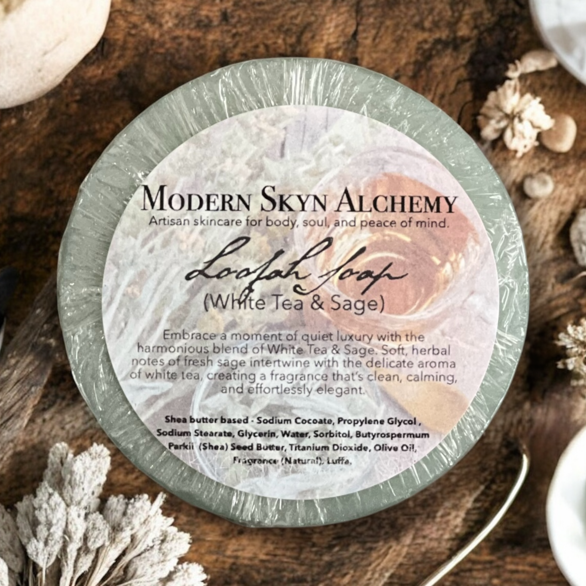 Elevate your daily ritual with the serene, grounding blend of our White Tea & Sage Loofah Soap. Inspired by the calming essence of a quiet tea garden, this handcrafted bar offers gentle exfoliation and a rich, aromatic lather, leaving your skin polished, deeply nourished, and beautifully fragranced.