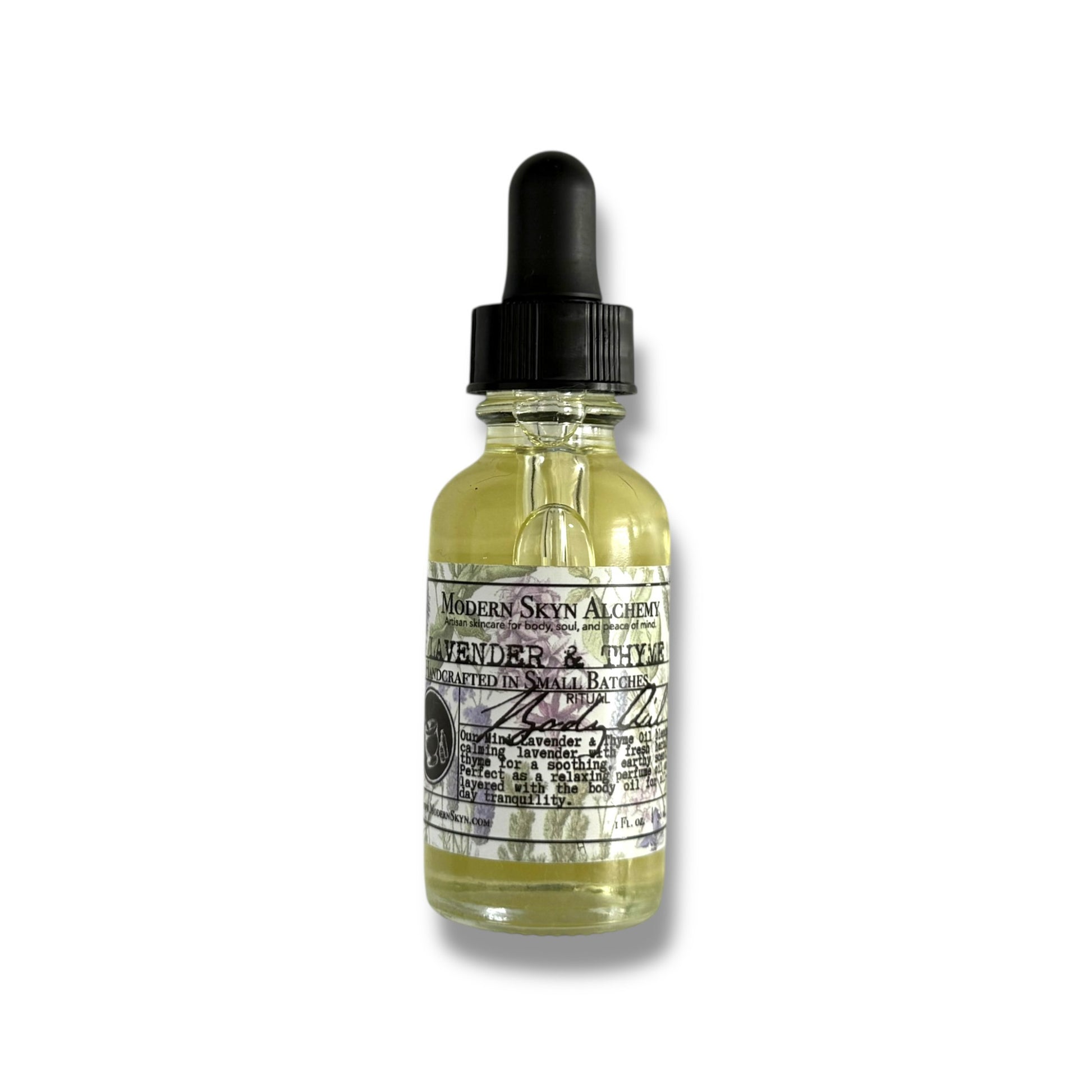 Indulge your skin and spirit with our Lavender & Thyme Body Oil — a soothing blend of Prunus Amygdalus Dulcis (Sweet Almond) Oil, Simmondsia Chinensis (Jojoba) Seed Oil, and natural fragrance that deeply nourishes while wrapping you in the calming aromas of lavender fields and fresh thyme. This lightweight oil leaves your skin soft, balanced, and beautifully scented.
